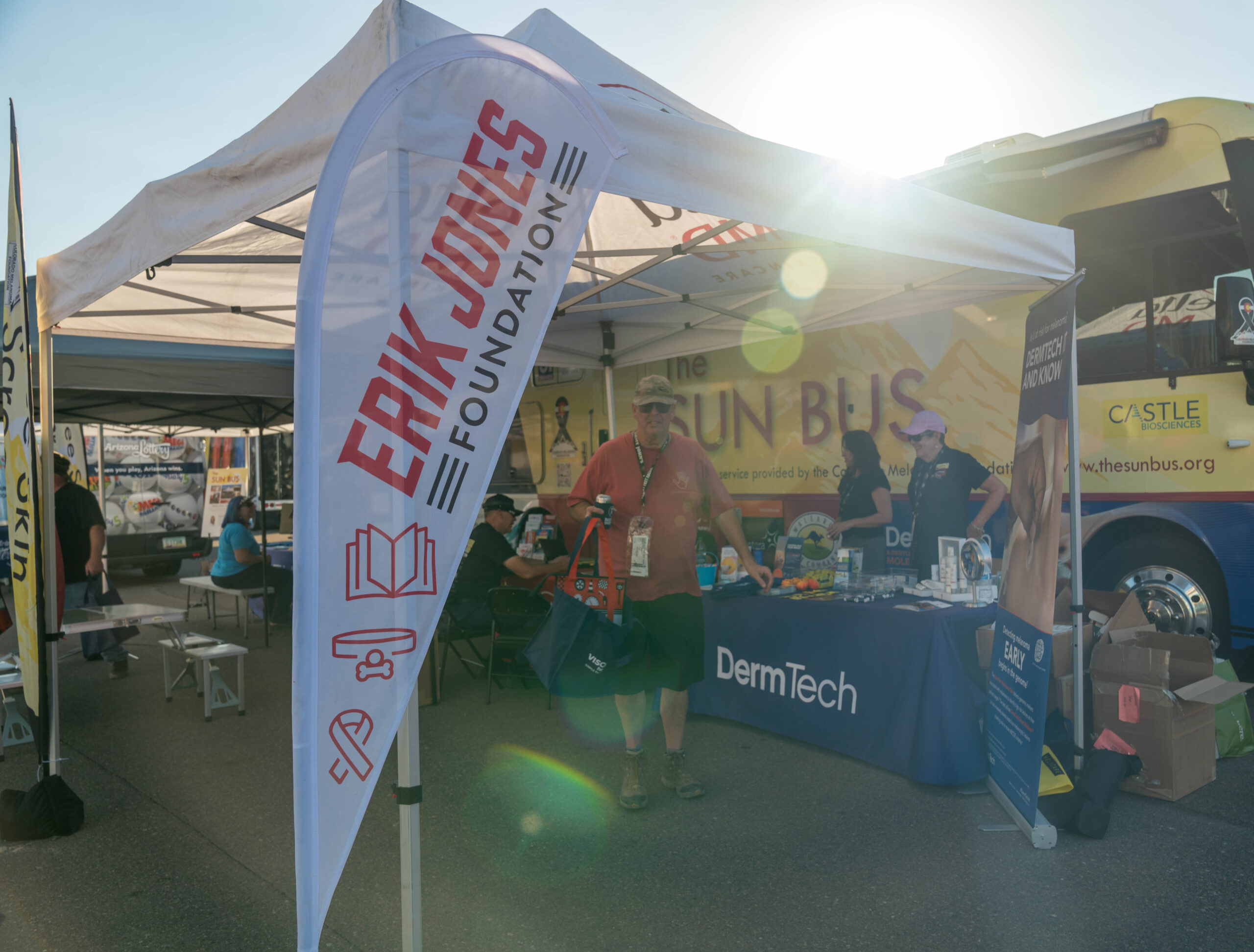 The Erik Jones Foundation partnered with the Sun Bus, a Denver, Colorado-based non-profit organization, to bring skin cancer screenings and sun safety education to the NASCAR Championship weekend at Phoenix Raceway. The Sun Bus, a mobile clinic and classroom with the flexibility to target select audiences at significant events engaged fans, members of the NASCAR industry, and speedway volunteers throughout the weekend. Hundreds of people took advantage of the opportunity to have their skin checked for suspicious lesions indicative of skin cancer. Throughout the weekend, 245 people were screened, with 109 referred for follow-ups with their local dermatologists.