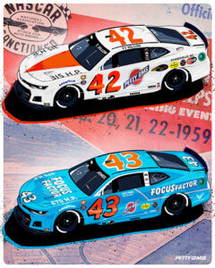 STATESVILLE, N.C. (May 4, 2022) - As the NASCAR Cup Series (NCS) embarks on its traditional Throwback Weekend at Darlington (S.C.) Raceway, Petty GMS will pay tribute to Lee and Richard Petty by throwing back to the inaugural Daytona 500 in 1959. Ty Dillon will honor the patriarch of the Petty family, Lee, by sporting the No. 42 design that captured the victory in the maiden event, while Erik Jones will showcase Richard’s iconic Petty blue scheme on the No. 43 entry.
