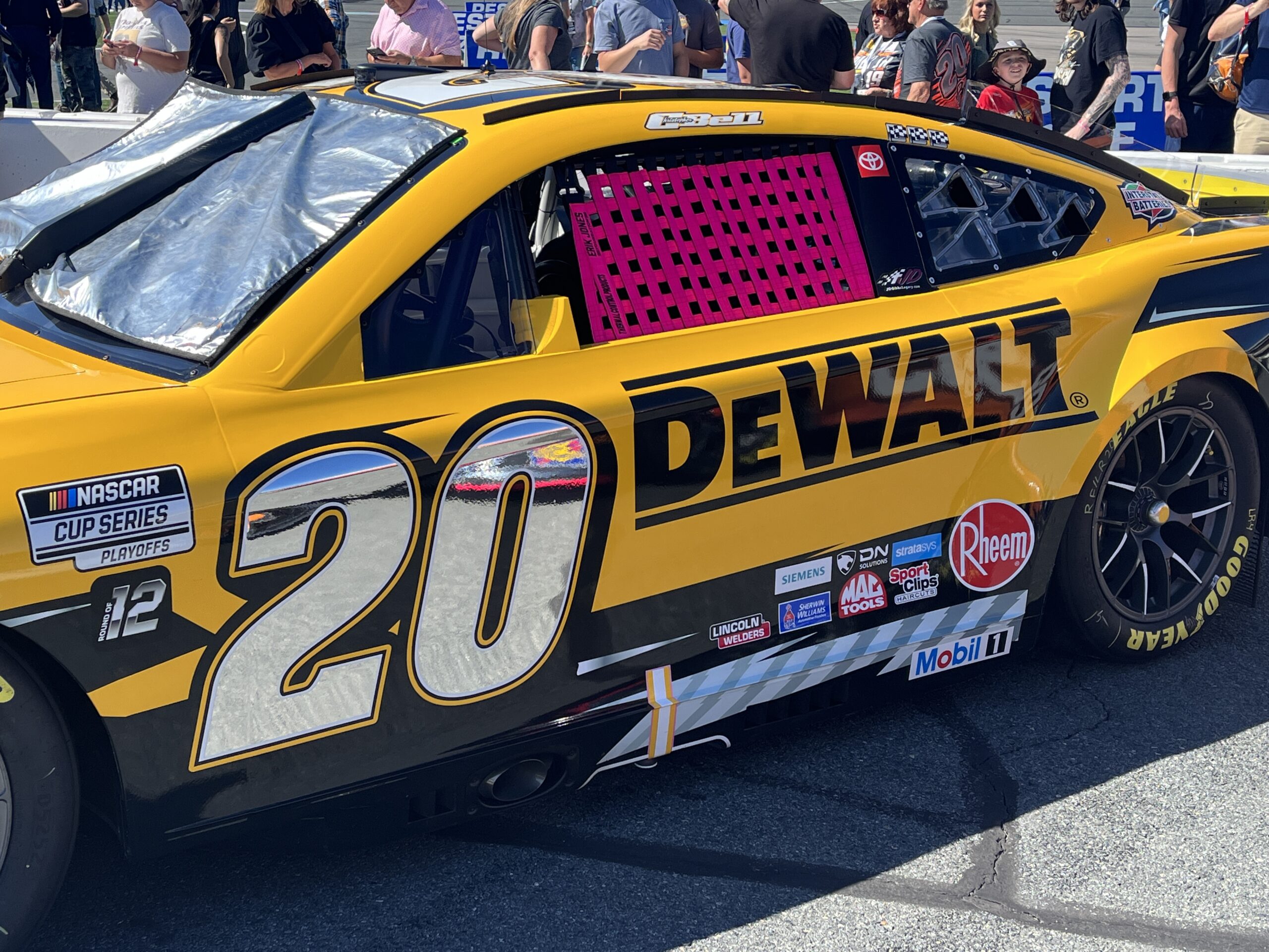 You are bidding on a race-used window net from the 2024 Bank of America Roval 400. This net was used on the #20 car driven by Christopher Bell.